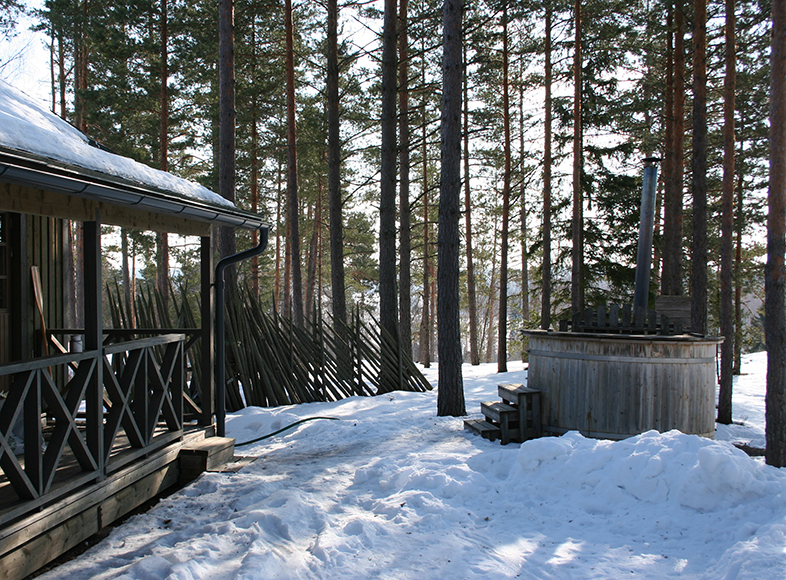 Torpansauna, pukuhuone ja iso terassi